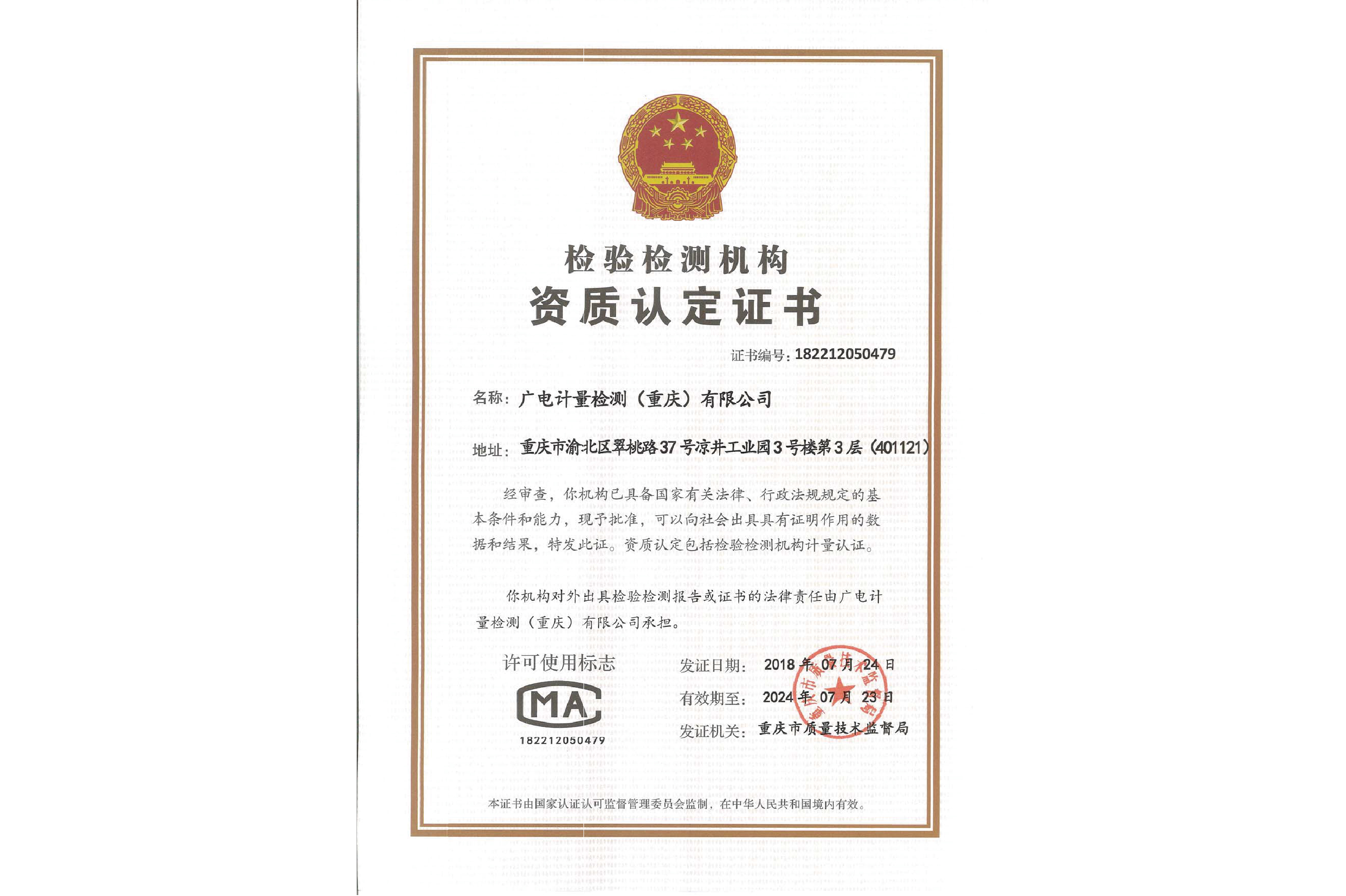檢驗檢測機構資質認定(CMA)證書-廣電計量(重慶)有限公司