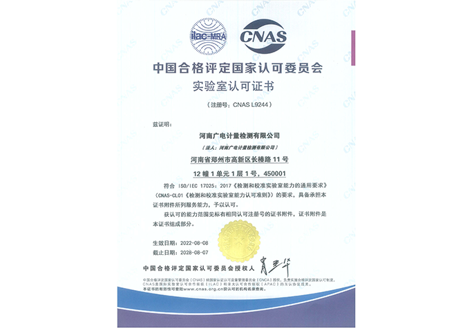 實驗室認可(CNAS)證書(中文)—河南廣電計量