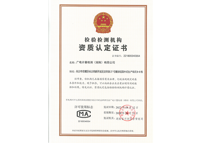 檢驗檢測機構資質認定(CMA)證書-廣電計量檢測(湖南)有限公司