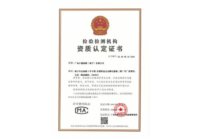 檢驗檢測機構資質認定(CMA)證書-廣電計量(南寧)有限公司