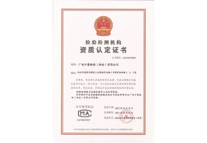 檢驗檢測機構資質認定(CMA)證書-廣電計量(西安)有限公司