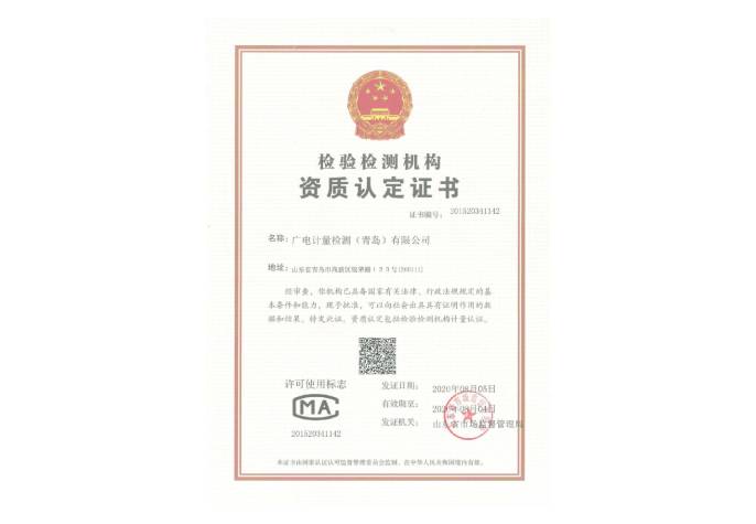 檢驗檢測機構資質認定(CMA)證書-廣電計量檢測(青島)有限公司