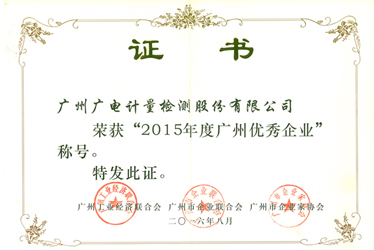 廣電計量獲“ 2015年度廣州優秀企業 ”稱號