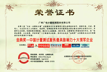 GRGT被評為“中國計量測試服務最具影響力十大領軍企業”