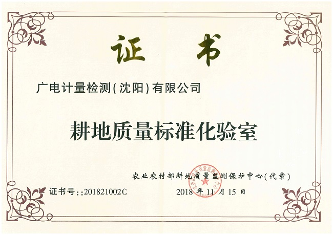 助力耕地質量提升|沈陽廣電計量被認定為“2018年耕地質量標準化驗室”