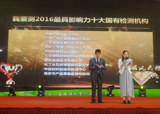 當(dāng)晚,論壇舉行“儀器及檢測風(fēng)云榜頒獎盛典”。行業(yè)知名媒體我要測網(wǎng)依據(jù)專家評審、網(wǎng)絡(luò)投票等環(huán)節(jié)對多家計(jì)量檢測機(jī)構(gòu)進(jìn)行綜合評價(jià),發(fā)布“2016最具影響力十大檢測機(jī)構(gòu)”,廣電計(jì)量榮獲“2016年度最具影響力十大國有檢測機(jī)構(gòu)”獎項(xiàng)。