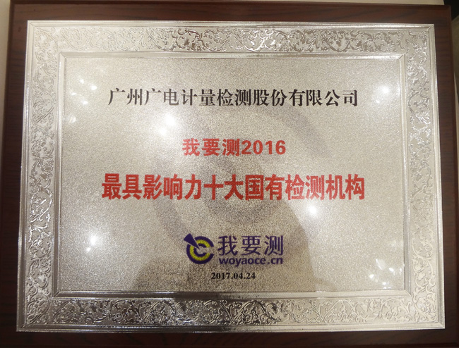 廣電計(jì)量當(dāng)選我要測2016年最具影響力十大國有檢測機(jī)構(gòu)