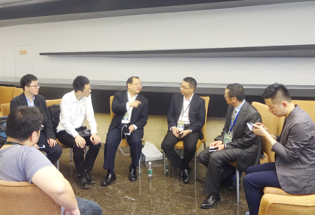 廣電計(jì)量副總經(jīng)理、董事會秘書歐楚勤(右三)與SGS、BV、TUV、我要測等企業(yè)高管座談交流