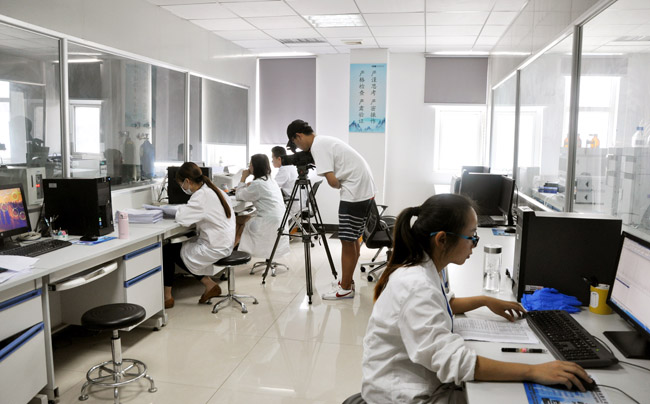 都市頻道攝影師在實驗室取景