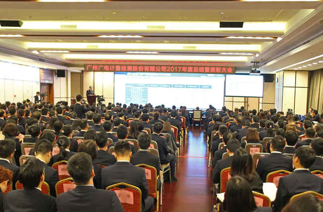 凝心聚力創(chuàng)佳績,砥礪奮進(jìn)繪新篇。1月26日,廣電計(jì)量2017年度總結(jié)暨表彰大會成功召開,廣州無線電集團(tuán)公司領(lǐng)導(dǎo)及各部門領(lǐng)導(dǎo)、廣電計(jì)量經(jīng)營管理團(tuán)隊(duì)、各子公司、各中心(部門)骨干員工代表齊聚廣州,共襄年度盛會。會議回顧年度大事,系統(tǒng)總結(jié)2017年取得的經(jīng)營管理成果,表彰先進(jìn)團(tuán)隊(duì)及個(gè)人,并針對2018年工作進(jìn)行部署。廣州無線電集團(tuán)副董事長、總裁、黨委副書記、廣電計(jì)量董事長黃躍珍發(fā)表重要講話,廣電計(jì)量總經(jīng)理、黨委副書記黃敦鵬代表公司作2017年度經(jīng)營工作總結(jié)報(bào)告,會議由廣電計(jì)量副總經(jīng)理曾昕主持。此外,大會特邀十余位計(jì)量檢測領(lǐng)域?qū)<矣H臨現(xiàn)場,共享豐收喜悅。