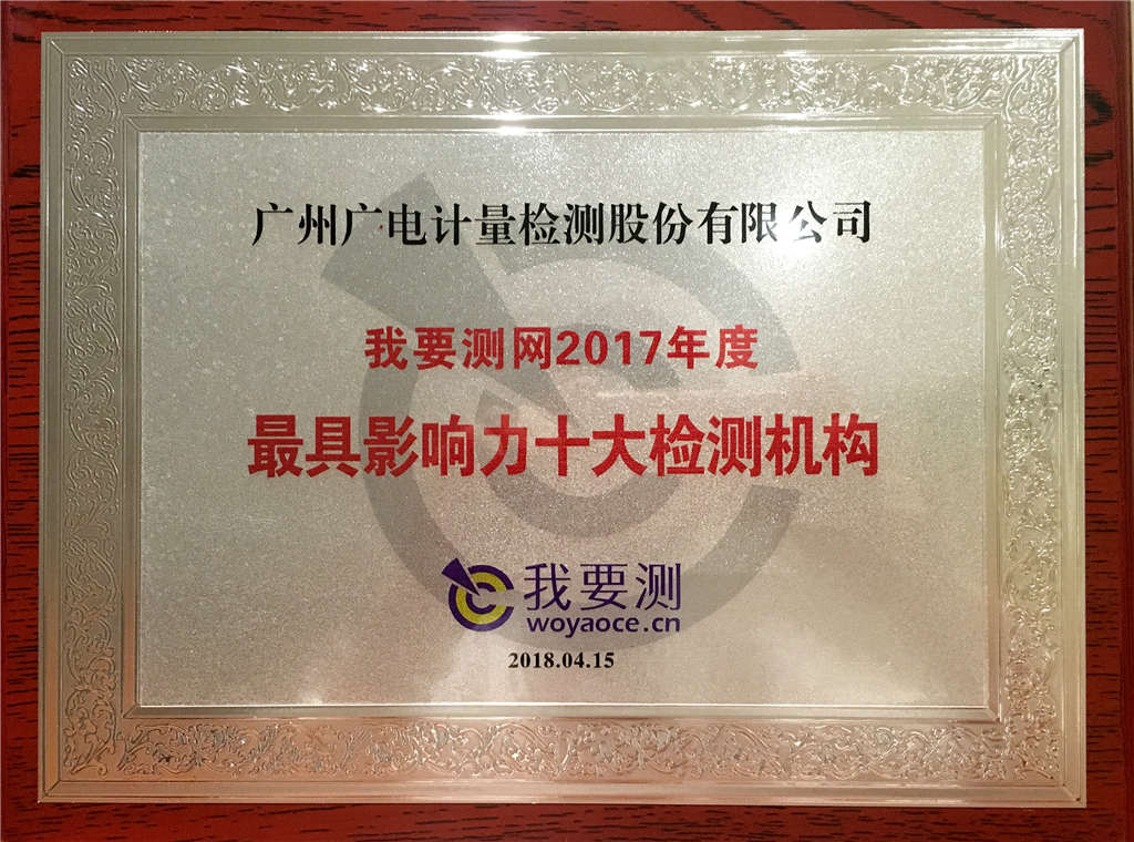 廣電計(jì)量當(dāng)選2017年最具影響力十大檢測(cè)機(jī)構(gòu)