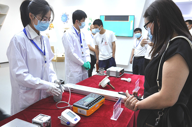 活動(dòng)以觀看“精準(zhǔn)抗疫,助力復(fù)工復(fù)產(chǎn)”計(jì)量主題視頻短片拉開序幕,讓參觀人員充分認(rèn)識(shí)到計(jì)量的重要性。為了讓來(lái)賓更加直觀地感受計(jì)量技術(shù)的重要作用,湖南廣電計(jì)量在展廳特別設(shè)置了抗疫儀器設(shè)備計(jì)量演示區(qū),對(duì)測(cè)溫儀、血壓計(jì)等與抗疫息息相關(guān)的儀器設(shè)備進(jìn)行現(xiàn)場(chǎng)計(jì)量演示和講解咨詢。“這是什么儀器,可以做哪些計(jì)量?”“這個(gè)儀器的工作原理是什么?如何保證額溫槍和耳溫槍量值準(zhǔn)確?”……參觀過(guò)程中,大家對(duì)計(jì)量工作表現(xiàn)出極大的興趣與熱情,提出很多生活中遇到的困惑和問(wèn)題。對(duì)此,技術(shù)人員一一作出解答。
