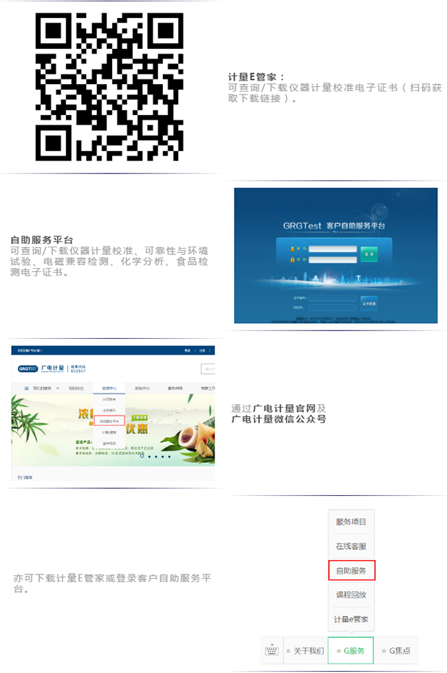 為便于客戶數據管理和查詢證書信息有效性,適應“互聯網+計量”的逐步推廣以及計量檢測信息化的發展需要,廣電計量依靠自身信息化建設能力,全面推行電子證書,確保質量信息真實、便捷、高效傳遞。今后,客戶可通過計量E管家、自助服務平臺、官網、公眾號等渠道自行查詢和下載使用,并可通過掃描證書二維碼查詢防偽信息。