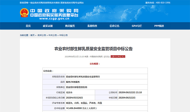 2020年6月,沈陽廣電計量中標農(nóng)業(yè)農(nóng)村部生鮮乳質(zhì)量安全監(jiān)管項目,將配合農(nóng)業(yè)農(nóng)村部實施生鮮乳質(zhì)量安全監(jiān)測計劃,協(xié)助政府全面掌握生鮮乳質(zhì)量狀況,加強乳品質(zhì)量安全工作。這是繼2019年承接農(nóng)業(yè)農(nóng)村部生鮮乳質(zhì)量安全監(jiān)管項目后,沈陽廣電計量再次中標該項目。