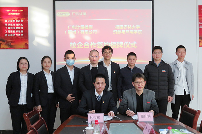 1月28日,廣電計量檢測(福州)有限公司(簡稱福州廣電計量)與福建農(nóng)林大學資源與環(huán)境學院(簡稱農(nóng)大資源與環(huán)境學院)舉行校企戰(zhàn)略合作簽約授牌儀式。雙方圍繞實習教學基地共建、技術創(chuàng)新、人才培養(yǎng)、學科建設、“產(chǎn)學研”項目合作等方面進行了深入洽談,并簽署校企戰(zhàn)略合作協(xié)議。福州廣電計量獲授牌農(nóng)大資源與環(huán)境學院“產(chǎn)學研合作基地”、“實習基地”。