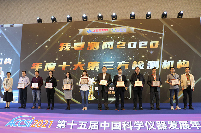 4月21日至23日,2021第十五屆中國科學儀器發展年會(ACCSI2021)在無錫召開。本屆年會上,政府主管部門領導、協會學會專家、知名儀器企業與檢測機構代表等千余位行業資深人士匯聚一堂,為中國科學儀器產業發展提供前瞻性、戰略性、全局性的思考藍本。廣電計量作為權威第三方檢測機構受邀出席,分享檢測行業人才培養的經驗和管理理念,同時榮登“我要測網2020年度十大第三方檢測機構”榜單。