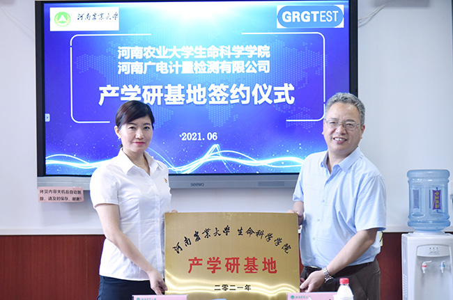 6月4日,河南農(nóng)業(yè)大學(xué)生命科學(xué)學(xué)院(簡稱農(nóng)大生命科學(xué)學(xué)院)與河南廣電計(jì)量檢測有限公司(簡稱河南廣電計(jì)量)舉行校企戰(zhàn)略合作簽約及授牌儀式。雙方就科學(xué)研究、人才培養(yǎng)、學(xué)生就業(yè)及黨建工作展開了深入而廣泛的交流,并簽訂產(chǎn)學(xué)研合作協(xié)議。河南廣電計(jì)量獲授牌 “河南農(nóng)業(yè)大學(xué)生命科學(xué)學(xué)院產(chǎn)學(xué)研基地”。