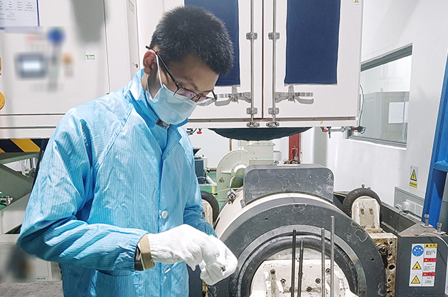工程師王非進(jìn)行測(cè)試準(zhǔn)備