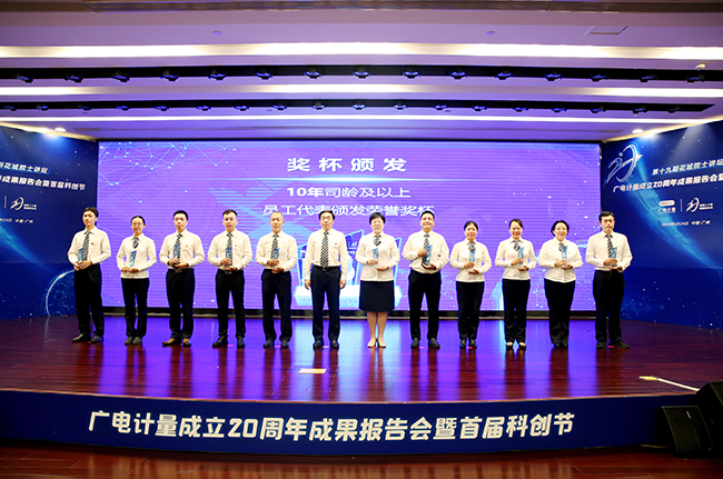 會(huì)上發(fā)布了主題為《激情 夢想 超越》的20周年形象片,深情回顧廣電計(jì)量與廣電計(jì)量人20年干事創(chuàng)業(yè)奮斗史和不斷自我挑戰(zhàn)創(chuàng)造奇跡、一步一個(gè)腳印實(shí)現(xiàn)跨越式發(fā)展的佳績傳奇。發(fā)布廣電計(jì)量司徽并進(jìn)行老員工榮譽(yù)表彰,對(duì)扎根公司平臺(tái)、與公司共成長的司齡10年及以上的員工進(jìn)行表彰感謝,并激勵(lì)全體廣電計(jì)量人以堅(jiān)定的理想信念、昂揚(yáng)的精神面貌,投身未來挑戰(zhàn),在實(shí)干中成就事業(yè),在奮斗中實(shí)現(xiàn)理想。