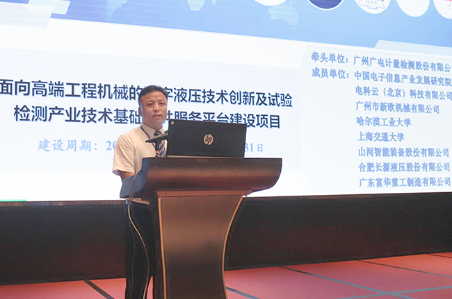 2020年,廣電計量牽頭中國電子信息產(chǎn)業(yè)發(fā)展研究院、新歐機械、哈爾濱工業(yè)大學、上海交通大學等單位,承擔了國家工信部“面向高端工程機械的數(shù)字液壓技術創(chuàng)新及試驗檢測產(chǎn)業(yè)技術基礎公共服務平臺”建設項目,開展高端工程機械數(shù)字液壓試驗檢測技術研究與創(chuàng)新,搭建檢驗檢測公共服務平臺。會上,趙可淪圍繞平臺建設方案、項目進展、后續(xù)規(guī)劃以及知識產(chǎn)權分析報告成果展示作主題報告。