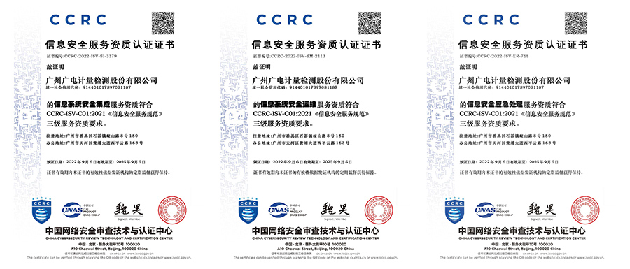 再突破!廣電計量新獲CCRC三項信息安全服務資質
