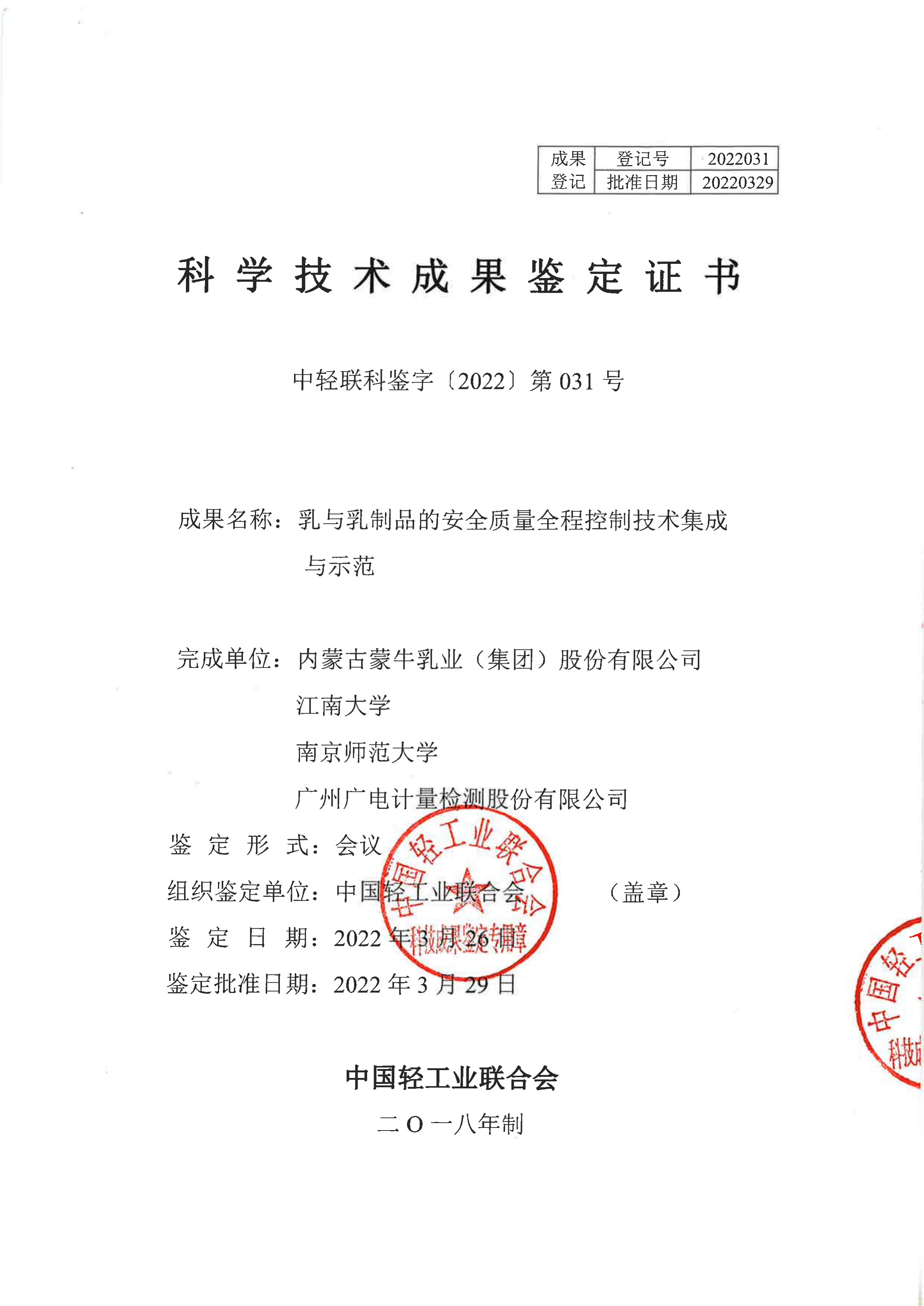 近日,中國輕工業(yè)聯(lián)合會組織有關(guān)專家召開了“十三五”重點研發(fā)計劃項目技術(shù)成果鑒定會。廣電計量參與的《乳與乳制品加工靶向物質(zhì)危害控制技術(shù)集成應(yīng)用示范》項目(以下簡稱“項目”)順利通過成果鑒定。專家組通過聽取研究團隊匯報、審閱相關(guān)資料、質(zhì)詢討論等環(huán)節(jié),一致認為項目整體技術(shù)達到了國際先進水平,具備廣闊的推廣與應(yīng)用前景。