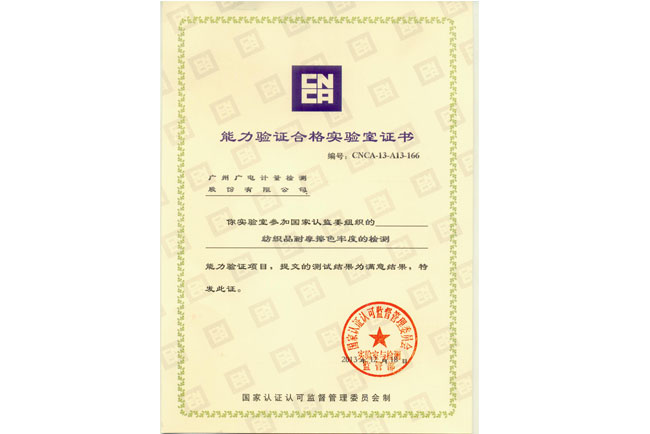 能力驗證的滿意結果證明了我司在紡織品及電子電器產品檢測能力滿足國家相關標準要求,具備了良好的技術底蘊和完善的質量保障體系,能夠確保檢測結果的質量。