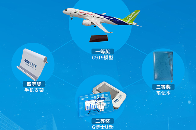 光臨廣電計量展位將隨機抽取品牌宣傳禮品一份,將有C919模型、U盤、手機支架、筆記本等品牌宣傳品,限量贈送先到先得。