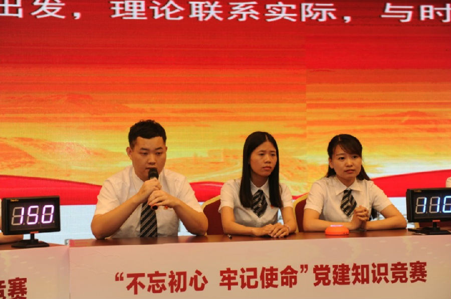 決賽分“個(gè)人必答題、小組搶答題、觀眾加分題、小組風(fēng)險(xiǎn)題”四個(gè)環(huán)節(jié),內(nèi)容涵蓋了黨的十九大精神,習(xí)近平新時(shí)代中國(guó)特色社會(huì)主義思想,新黨章,習(xí)總書記對(duì)廣東工作重要指示批示精神和全國(guó)、全省、全市國(guó)有企業(yè)黨建工作會(huì)議精神等知識(shí)要點(diǎn)。進(jìn)入決賽的6支代表隊(duì)精彩紛呈的激烈交鋒,為現(xiàn)場(chǎng)觀眾帶來(lái)了一場(chǎng)生動(dòng)的宣講課。