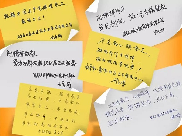 在節(jié)目現(xiàn)場,有這樣一群中共預(yù)備黨員,他們有鐵路工作人員,有醫(yī)務(wù)工作者,有幼兒園教師,還有電力工人等。作為新黨員,他們被榜樣的事跡所感動,紛紛寫下了對榜樣的敬意。