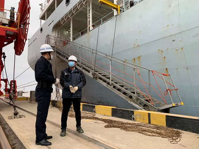 特殊時期需要鐵一般的責任和擔當,洋山邊檢站以建設“政治功能強、支部班子強、黨員隊伍強、作用發揮強”的“四強”黨支部為抓手,支部領導下沉一線,黨員民警沖鋒在前,為船舶快速辦理通關手續,并派出警力全天候值守,確保國際航行船舶在港期間安全和葉片專業裝卸工人輪班連續作業,為臨港產業園區復工復產提供堅實基礎。