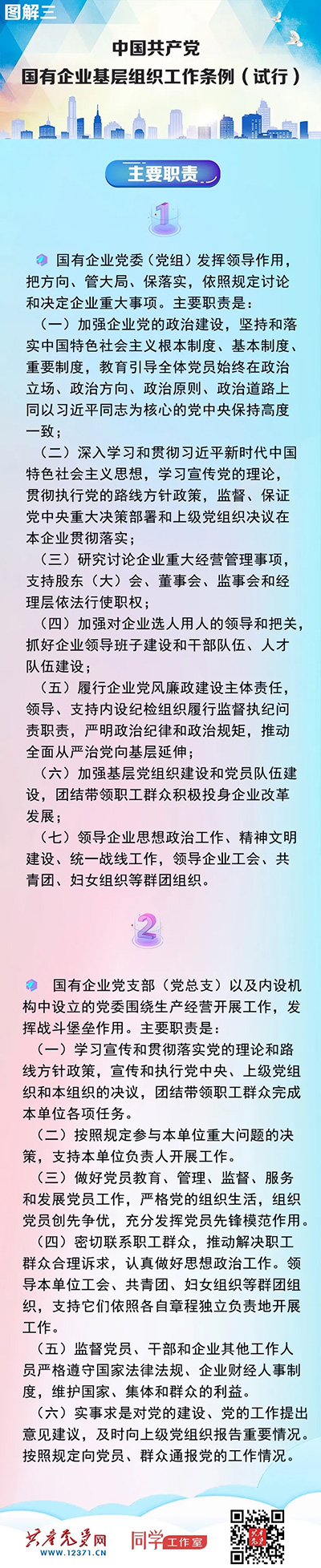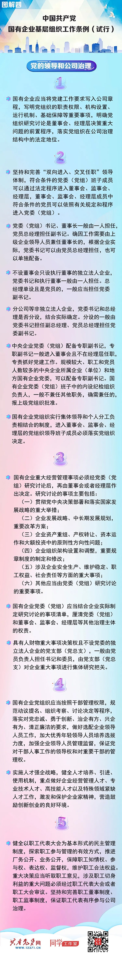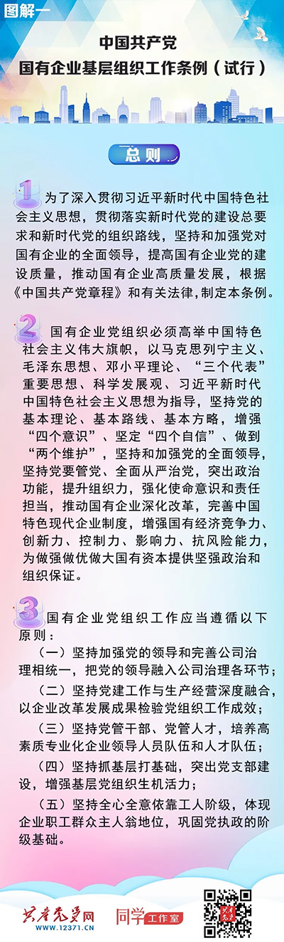 國有企業(yè)是中國特色社會主義的重要物質(zhì)基礎(chǔ)和政治基礎(chǔ),是黨執(zhí)政興國的重要支柱和依靠力量。堅持黨的領(lǐng)導(dǎo)、加強黨的建設(shè)是國有企業(yè)的“根”和“魂”,是我國國有企業(yè)的光榮傳統(tǒng)和獨特優(yōu)勢。《中國共產(chǎn)黨國有企業(yè)基層組織工作條例(試行)》以習(xí)近平新時代中國特色社會主義思想為指導(dǎo),深入貫徹黨的十九大和十九屆二中、三中、四中全會精神,貫徹黨章要求,對國有企業(yè)黨組織工作作出全面規(guī)范,是新時代加強國有企業(yè)黨的建設(shè)的基本遵循。