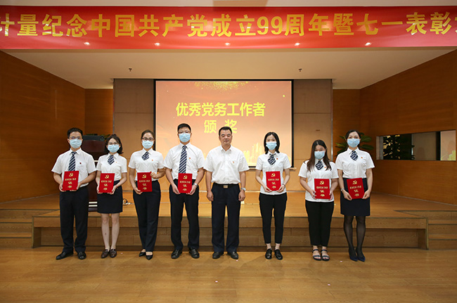 為紀念中國共產黨成立99周年,充分發揮先進典型的示范表率作用,7月16日,廣電計量召開紀念中國共產黨成立99周年暨表彰大會。大會表彰了過去一年在廣電計量黨建工作中涌現的先進集體和先進個人,開展主題為“全力抗疫情 合力保生產”詩朗誦和主題黨課學習,并部署強調重點工作,激勵廣大黨員職工堅定信心、迎難而上、艱苦奮斗,進一步發揮黨組織戰斗堡壘作用和黨員先鋒模范作用,為下半年全面打贏疫情防控和生產經營攻堅戰而努力奮斗。公司黨委委員、公司經營班子、26個黨支部的黨員及入黨積極分子共400余人,分別現場、視頻參加本次會議。會議由公司黨委委員、黨群辦公室主任鐘桂芳主持。