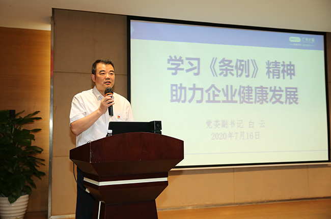 最后,白云結合《中國共產黨國有企業基層組織工作條例(試行)》(簡稱:《條例》)解讀和廣電計量經營工作實際,給黨員們帶來一堂精彩而又接地氣的黨課。白云首先帶領大家重溫了《條例》的重點核心內容,引領廣電計量黨建工作與《條例》學用結合、知行合一。接著白云對2020年公司重點工作進行了回顧,對關鍵性奮斗指標進行了強調,并對職能部門的階段重點工作進行了部署。最后,白云以“平臺”為切入點,重點闡述了廣電計量是一個“自由想象、自助發揮、自動驅使”的優秀平臺,呼吁大家要珍惜公司平臺,以“三個有所不同”作為職業的終生奮斗目標,實現自己的人生價值。