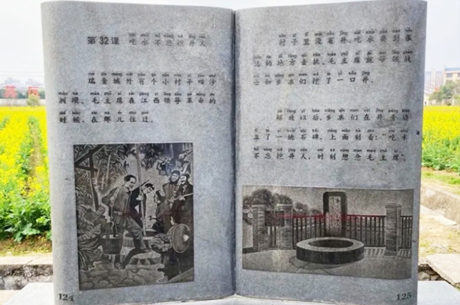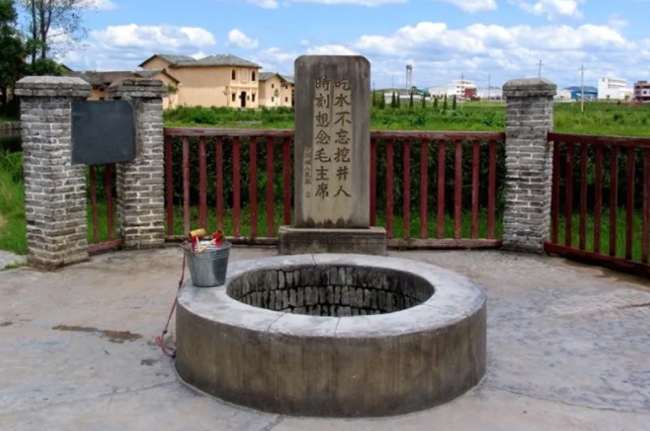解放以后,鄉親們在井旁邊立了一塊石碑,上面刻著:“吃水不忘挖井人,時刻想念毛主席。”