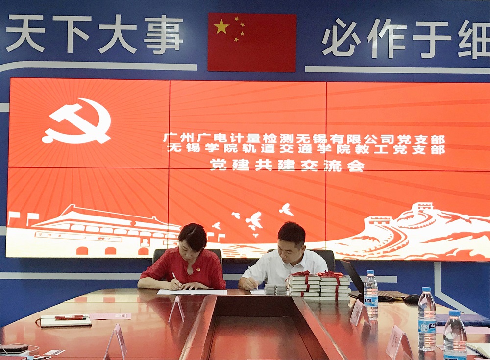 2022年9月7日,廣電計量無錫子公司黨支部赴無錫學院軌道交通學院教工黨支部(以下簡稱“軌道院黨支部”)開展黨建工作交流。雙方支部就校企聯合黨建工作著力點和方向進行了探討,達成了共識,并完成了校企黨建共建簽約。