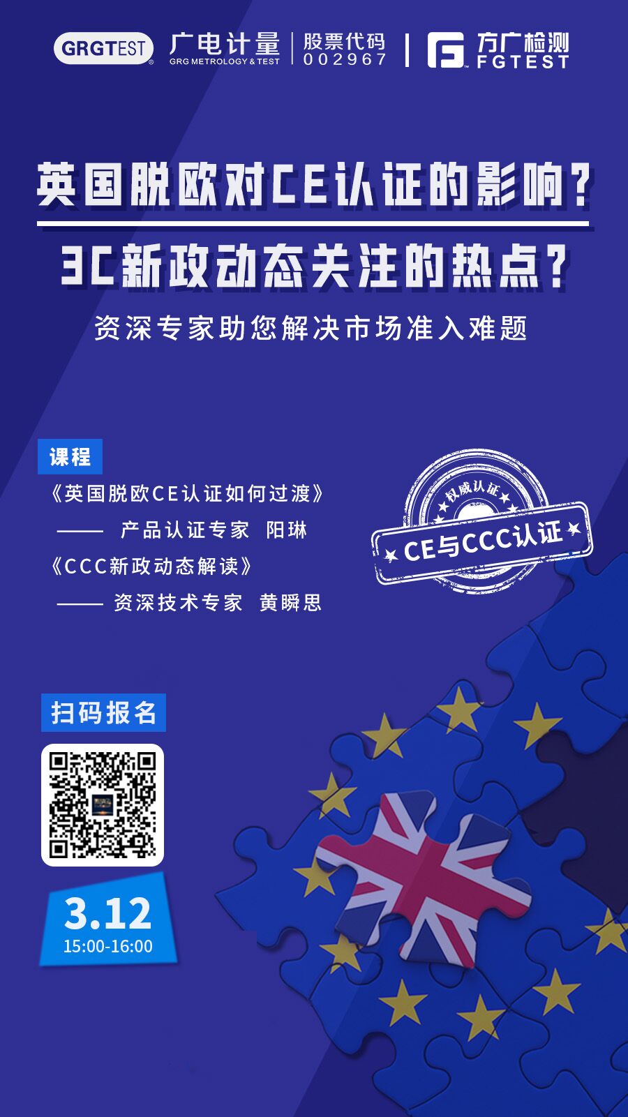 針對目前CCC最新政策,企業(yè)該如何進行應(yīng)對,使產(chǎn)品符合最新標(biāo)準(zhǔn),同時CCC推出的強制性認(rèn)證產(chǎn)品自我聲明和CE的概念有否相同?方圓廣電檢驗檢測股份有限公司技術(shù)專家將為企業(yè)開展認(rèn)證專場線上直播公開課,為企業(yè)快速解決市場準(zhǔn)入相關(guān)問題,解答企業(yè)疑問。